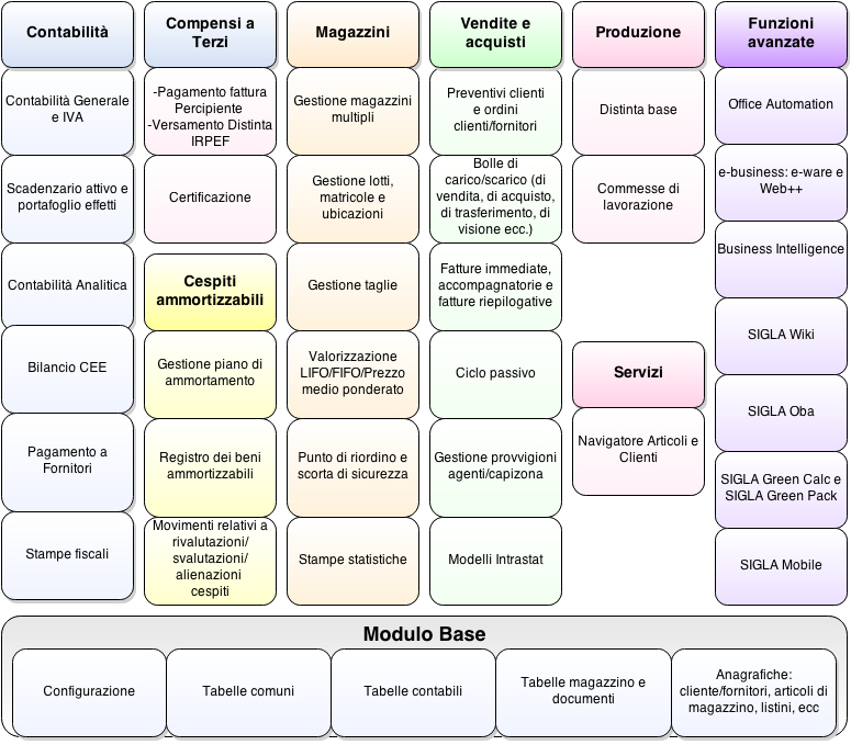 - Servizi Integrati (Office Automation, SIGLA Wiki, SIGLA Oba, SIGLA Green Pack e SIGLA Green Calc, e-ware, ecc)